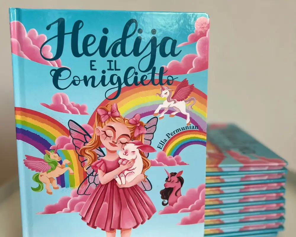All’interno del libro troverete la storia della bambina Heidi a cui viene regalato un coniglio magico.